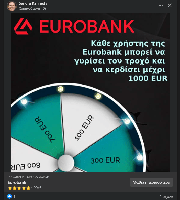Το λινκ βέβαια δεν οδηγεί σε επίσημο ιστότοπο της Eurobank.