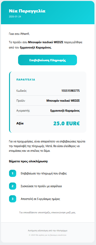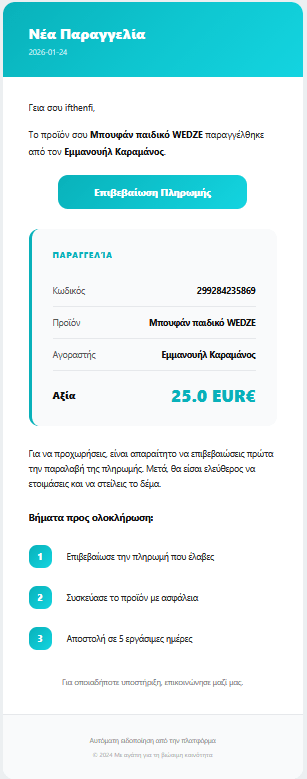 Δύο μειλ με διαφορετικό αποστολέα (παραθέτω τα μειλ στο τέλος), αλλά ακριβώς ίδια ημερομηνία και ώρα αποστολής, αναφέρανε αγορά ενός αντικειμένου μου από κάποιον χρήστη. Τα μειλ ζητούσανε επιβεβαίωση ότι έγινε η κατάθεση από τον αγοραστή, πατώντας σε κάποιο λινκ.