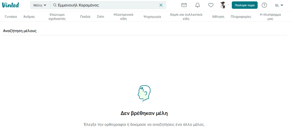 - Έβαλα το όνομα που εμφανίζεται στο μέιλ, αλλά δεν υπάρχει στα Μέλη της Vinted.